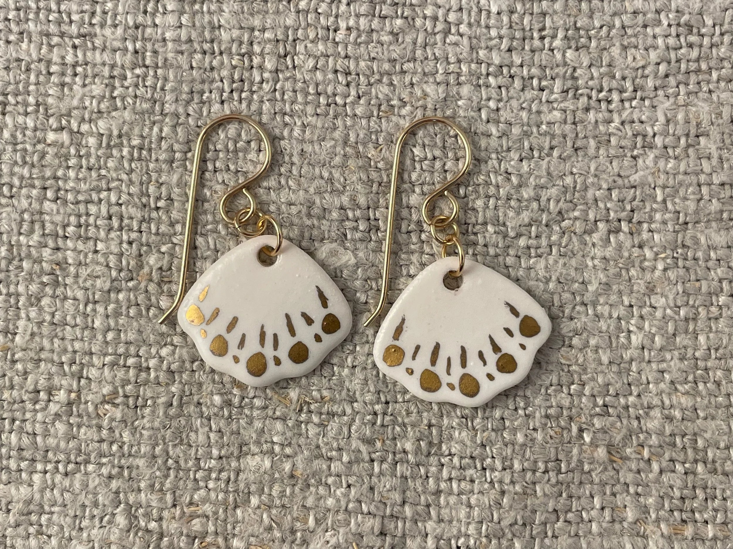2025, 3.3 x 1.7 x 0.3 cm, Hand-made porcelain earrings with 22ct gold lustre and 9ct gold filled findings.