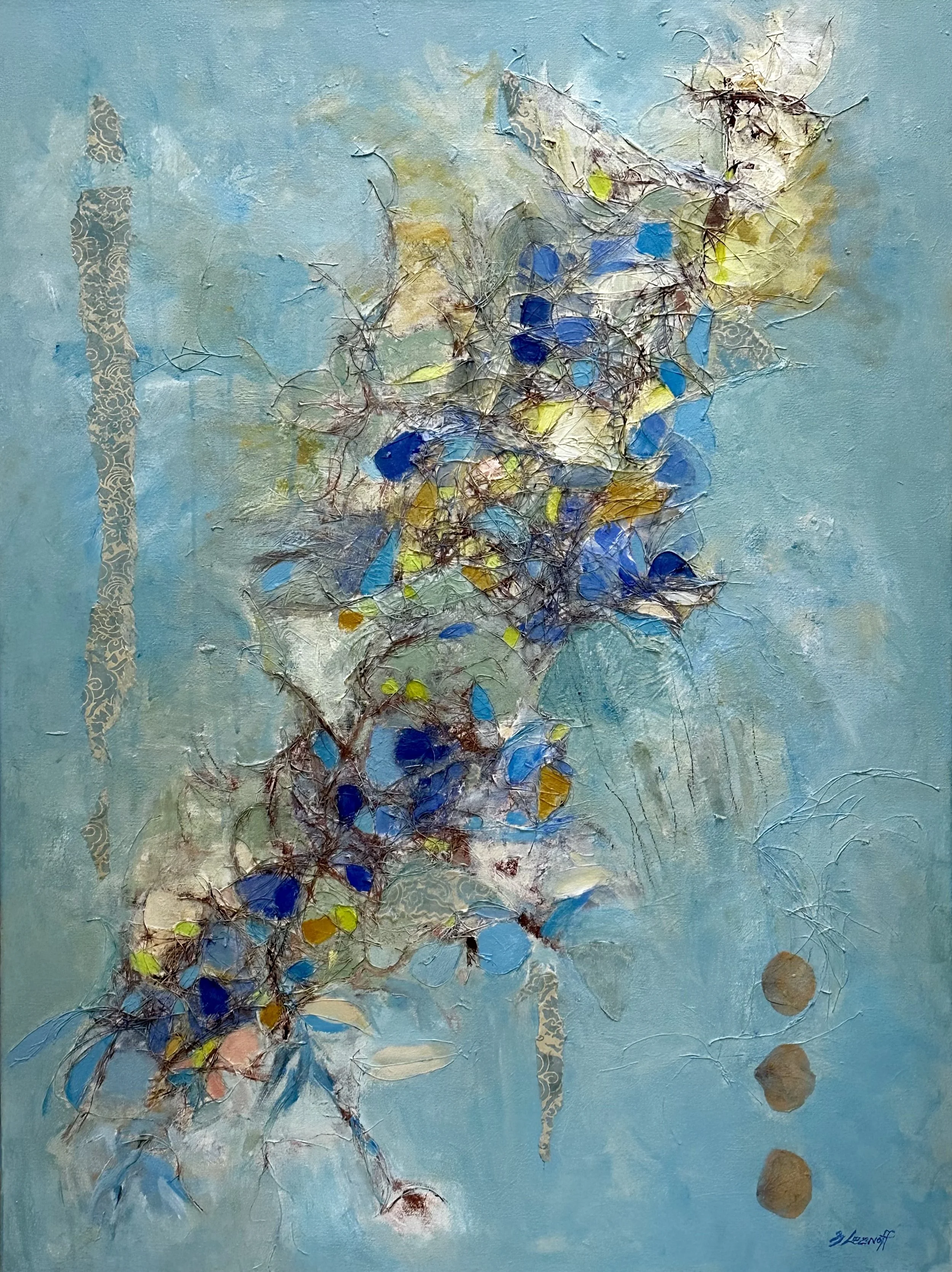 I currently divide my time between painting and writing. I was an instructor in the Creative Writing Department at Douglas College for 30 years. Writing engages my creative and analytical mind, while painting leans on intuition and the senses. As an artist, I play with imagery the way poets play with words. My mixed media paintings are primarily abstract, incorporating landscape and figurative elements. I use acrylics, ink, pastels, Japanese rice papers, charcoal, leaves and petals, juxtaposing materials and ideas. My work is textured and dramatic, mythical and symbolic. My paintings have been exhibited across North America. My published work as an author includes: plays, children’s books, film, scripts, and fiction, and the award-winning novel Heartache and Other Natural Shocks. Making art is a playful and passionate leap of faith. Looking at art should be like having a great conversation. The goal is always: to connect.