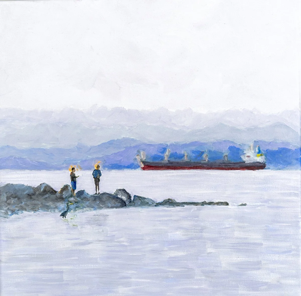I am a Vancouver-based artist whose work explores themes of solitude, connection, and the emotional resonance of landscapes. Inspired by the beaches, forests, and mountains of British Columbia, my paintings and mixed-media resin pieces reflect the shifting balance between sea, sky, and industry.