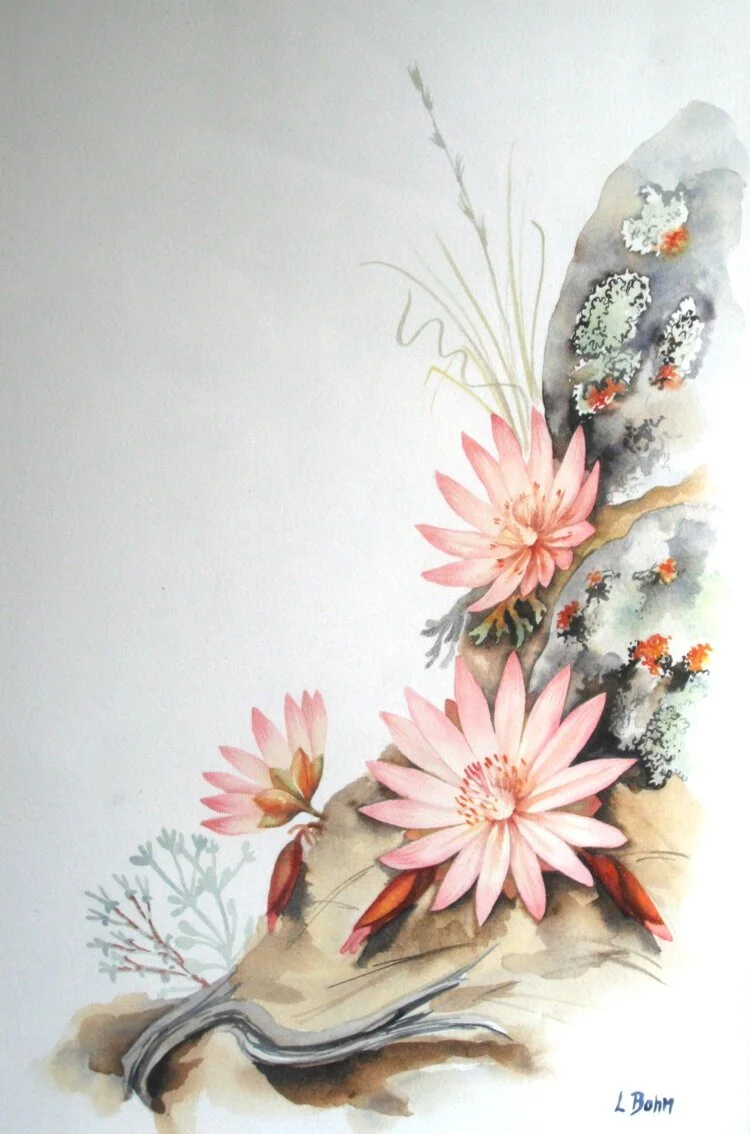 I am inspired to paint mountain scenery from sketches done on hikes, and British Columbia plants found in Nature. I have an honours B.SC degree in botany from McGill University, twenty years laboratory work in botany and botanical illustration for periodicals, books, and Davidsonia, the magazine of the U.B.C. Botanical Garden until 1986. I have been a botanical artist and painter of landscapes and mountains since 1986, a member of Artists in Our Midst since 1994, and since 1986, a member of the North Shore Hikers and Alpine Club of Canada.