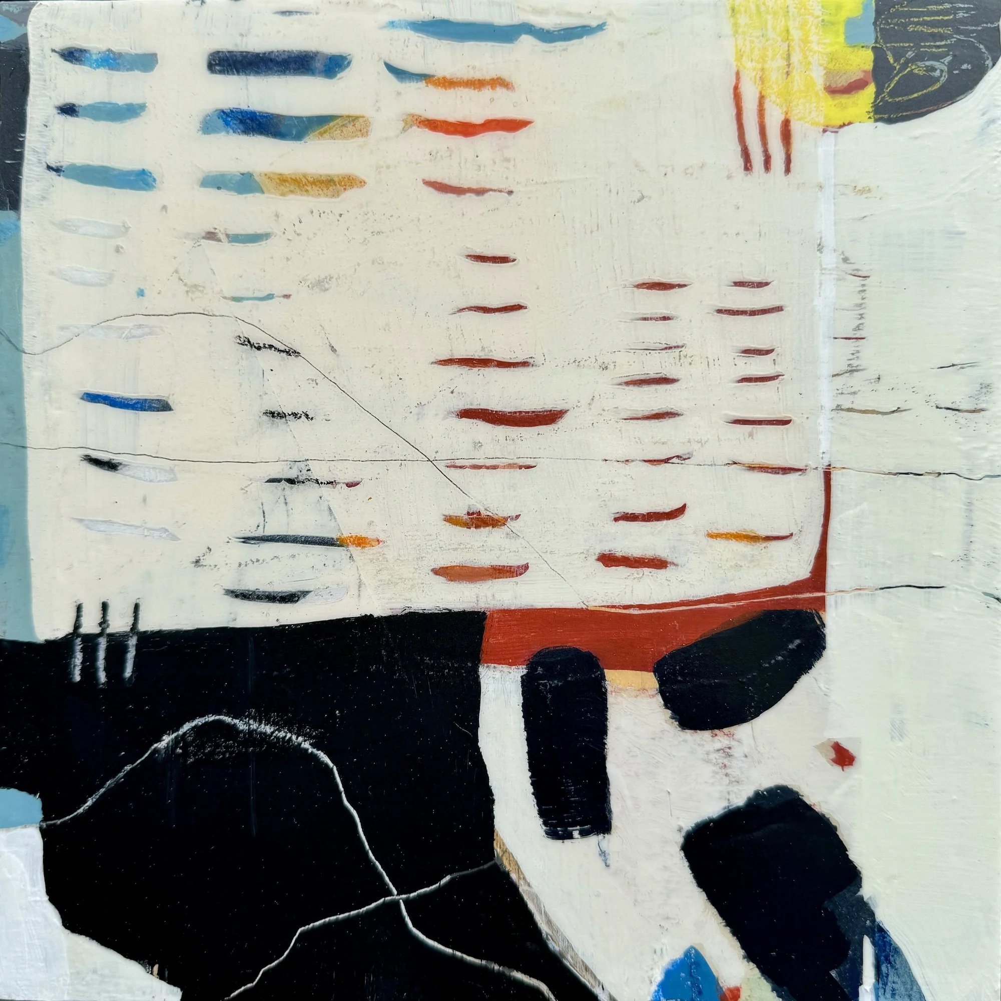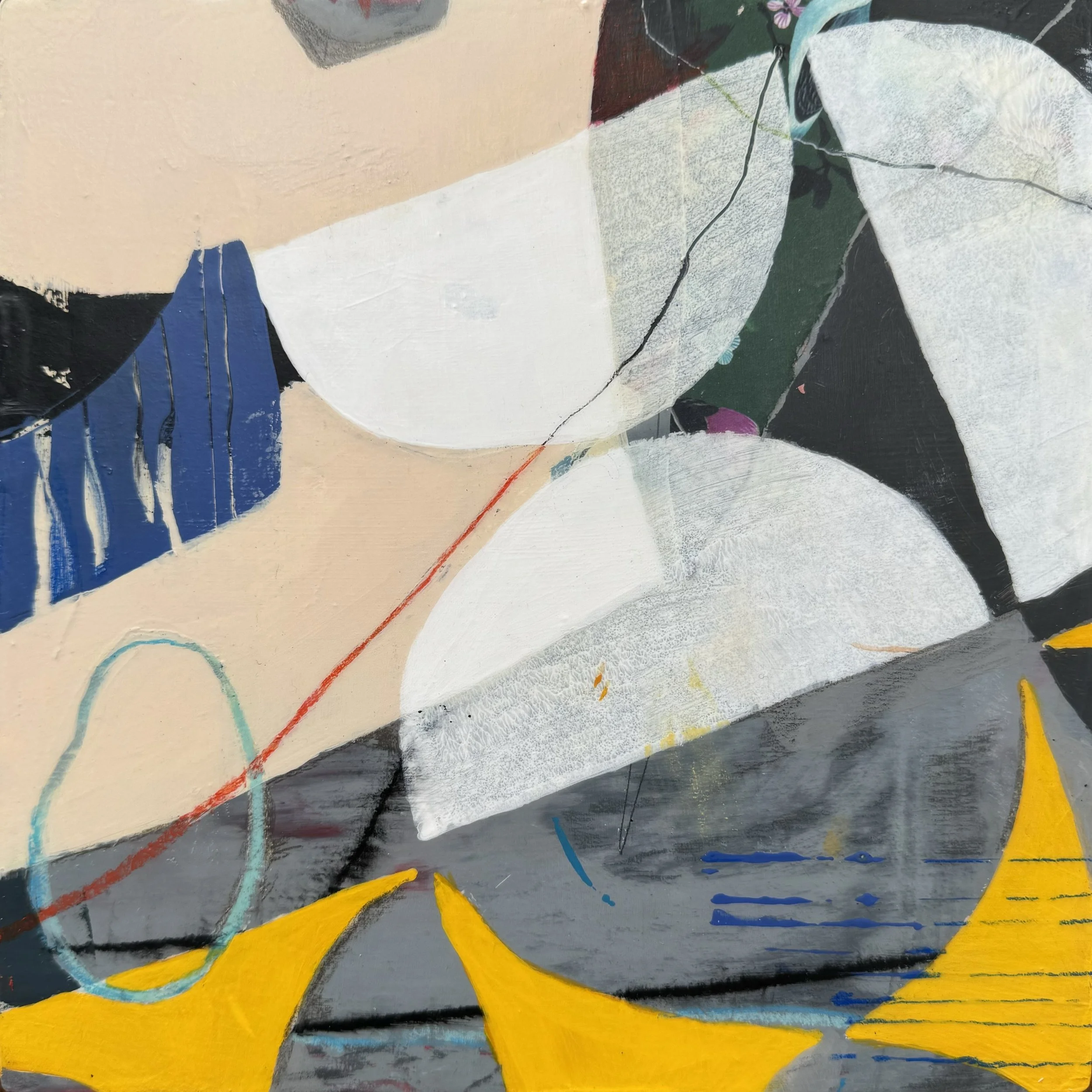 2024, 10”x10”, acrylic, collage, wax crayon, pencil, gel pen