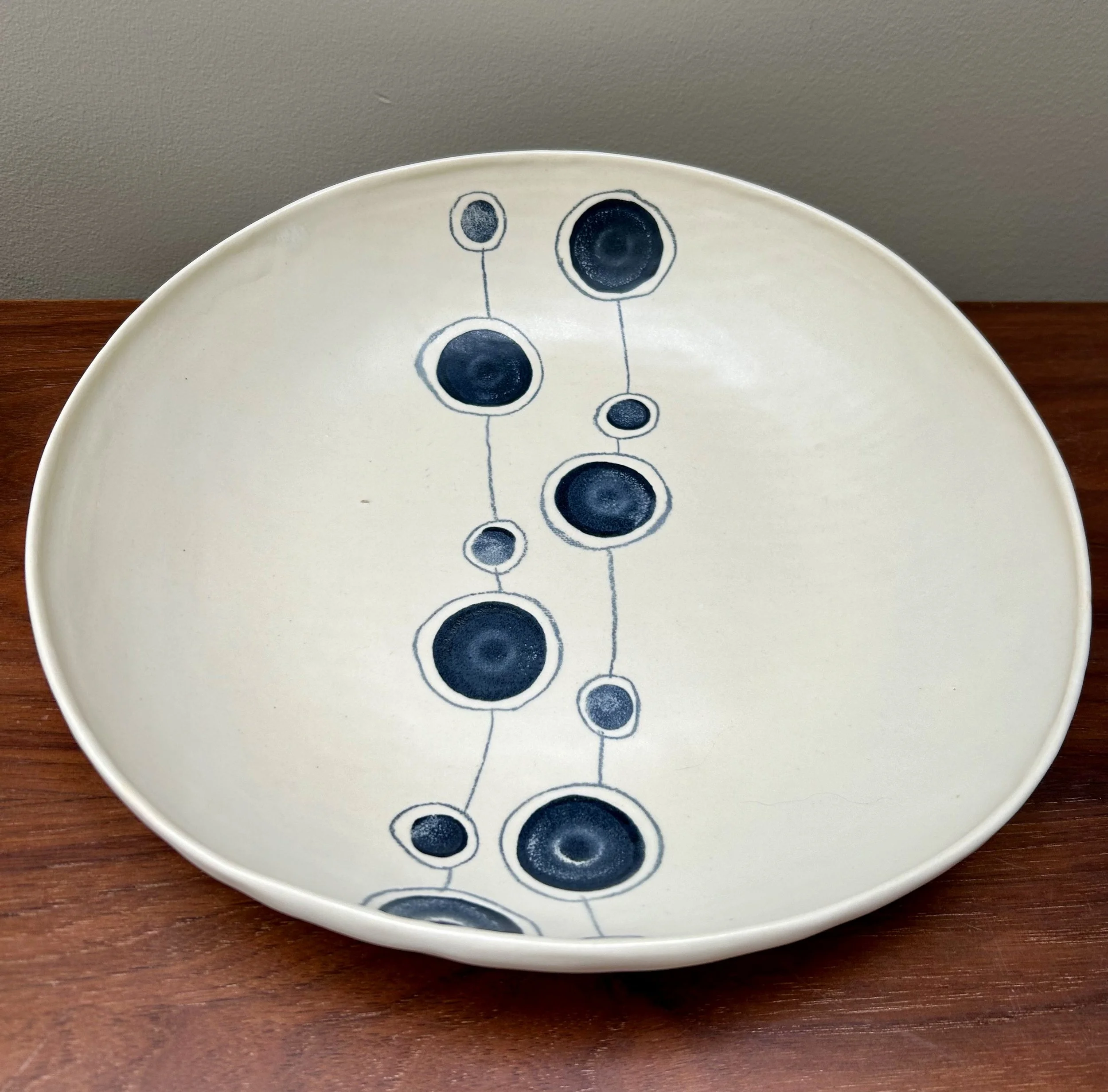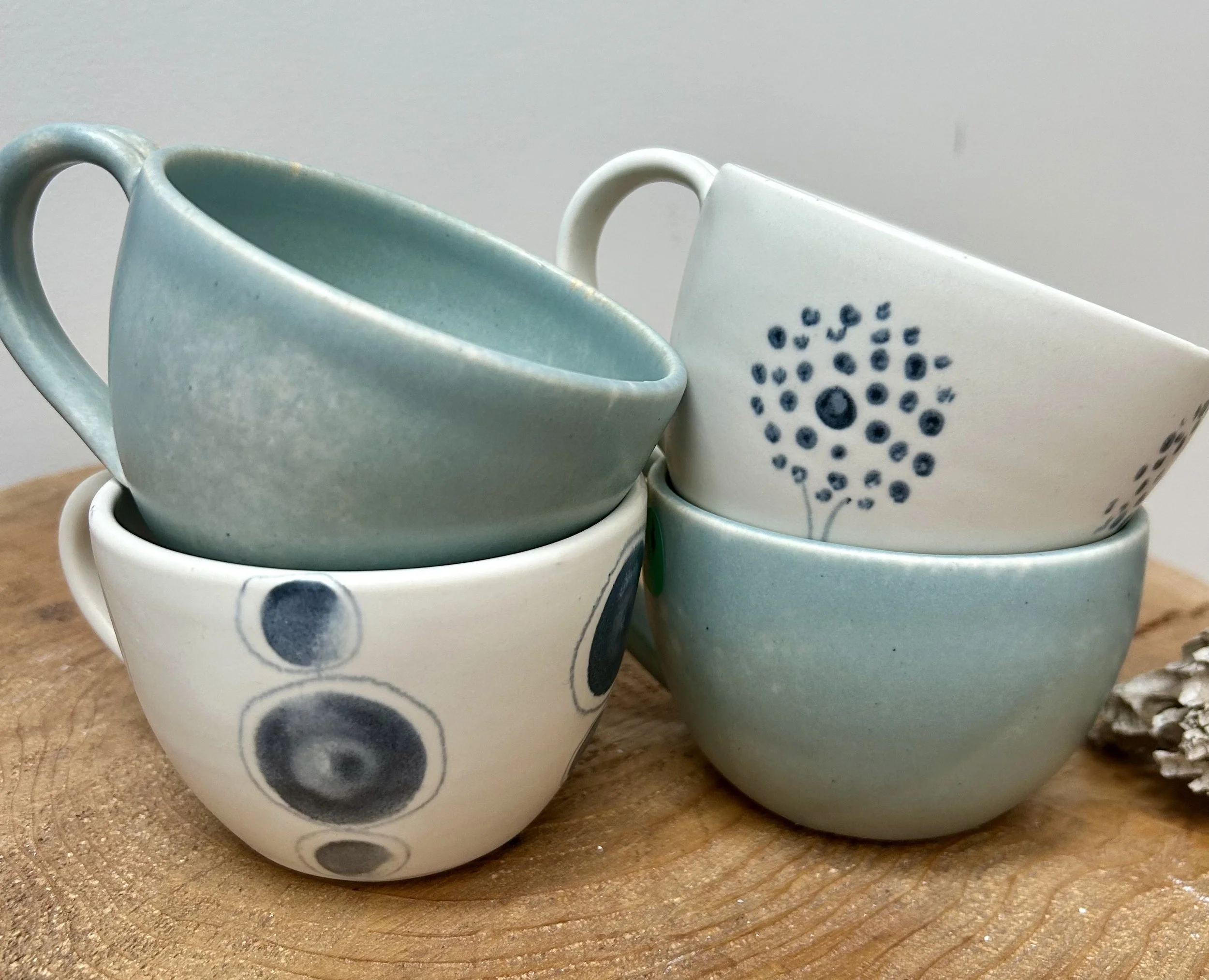 My focus is creating functional pottery that feels good to touch and is easily handled, but robust enough to withstand being chucked into the sink after a dinner party. I am drawn to softer shapes, most often curved and rounded forms. Most of my work is thrown on the wheel and sometimes altered, but retains an easy aesthetic. I generally work within a quiet and neutral colour range, and sometimes incorporate loose patterns or textures that reflect nature.