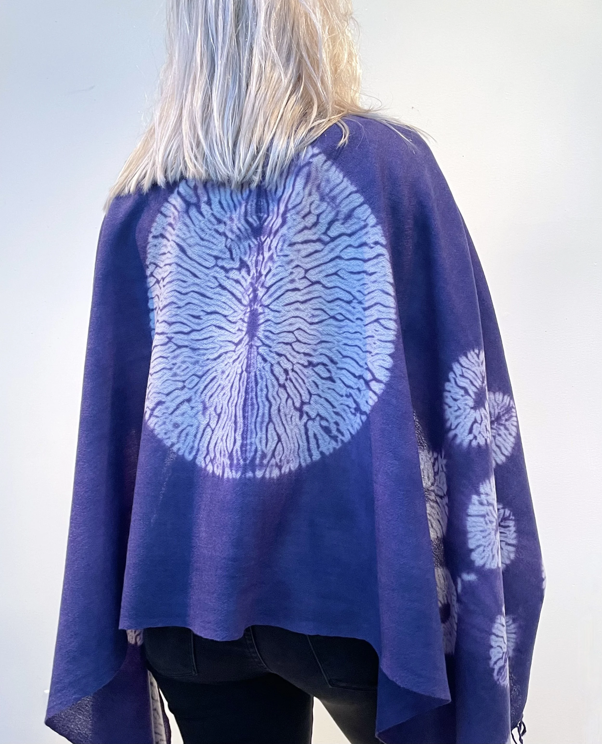 My travels in Japan and India awakened my love of slow fashion ~ rooted in centuries of traditional craftsmanship ~ using natural fabrics and dyes which have a minimal impact on the environment. My scarves are one of a kind pieces, created using 100% natural fabrics ~ Silk, Merino Wool, Linen, Cotton. The natural dyes I use are a sustainable way of creating colours on cloth. Indigo, Madder, Logwood, Weld, Lac, Persimmon, Cochineal, Myrobalan. Watching colours change and emerge from a dye bath is a magical experience. Natural dyes, in combination with various Japanese Shibori printing techniques, seem particularly well suited to capture fleeting impressions of light and movement in nature. I approach each of my fabric pieces as I would an abstract painting. To create the patterns on my scarves I use various Shibori resist techniques that I learned while studying in Japan. I love the surprise and wonder each time I unfold a piece of Shibori, whether it has been folded, stitched or clamped.
