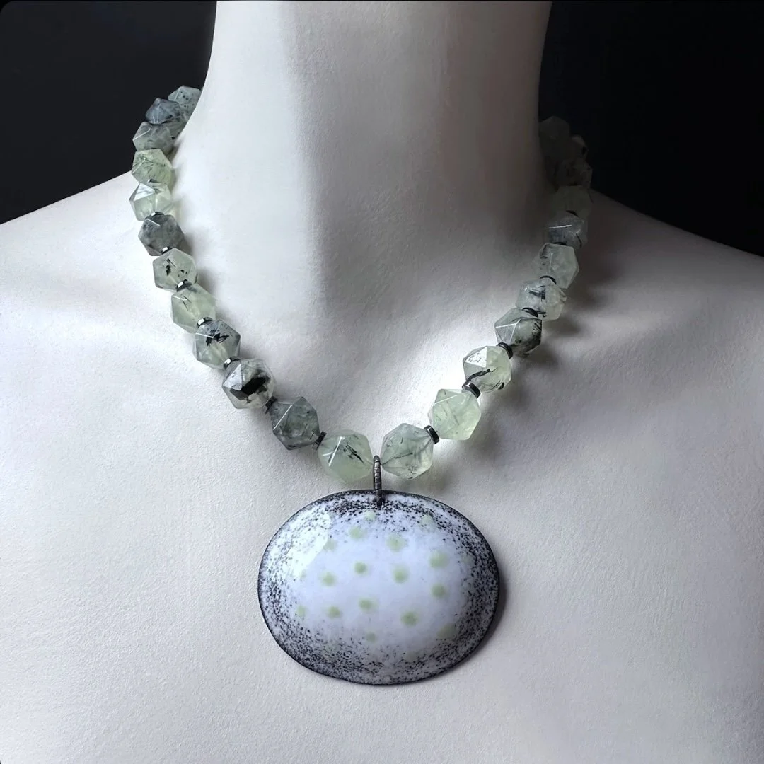 2024, Pendant 1" x 1.5", copper, enamel, prehnite