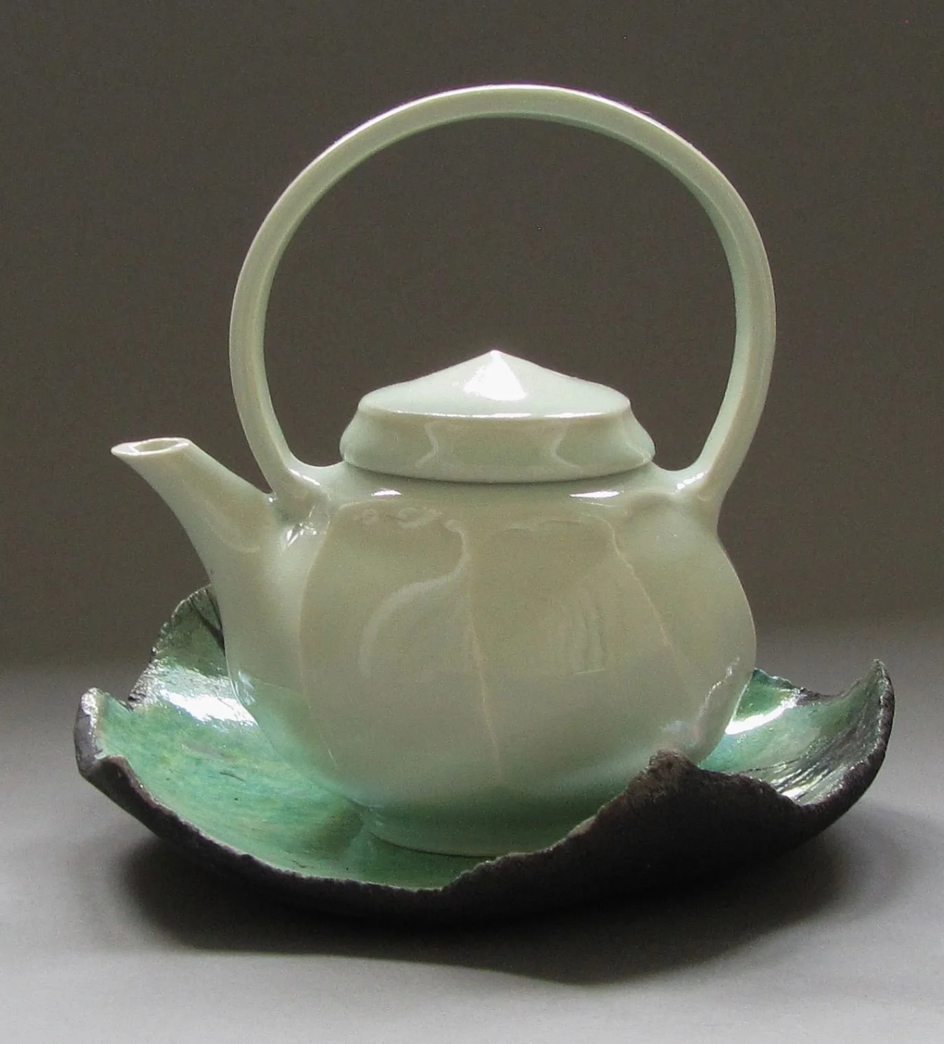 celadon teapot with raku plate